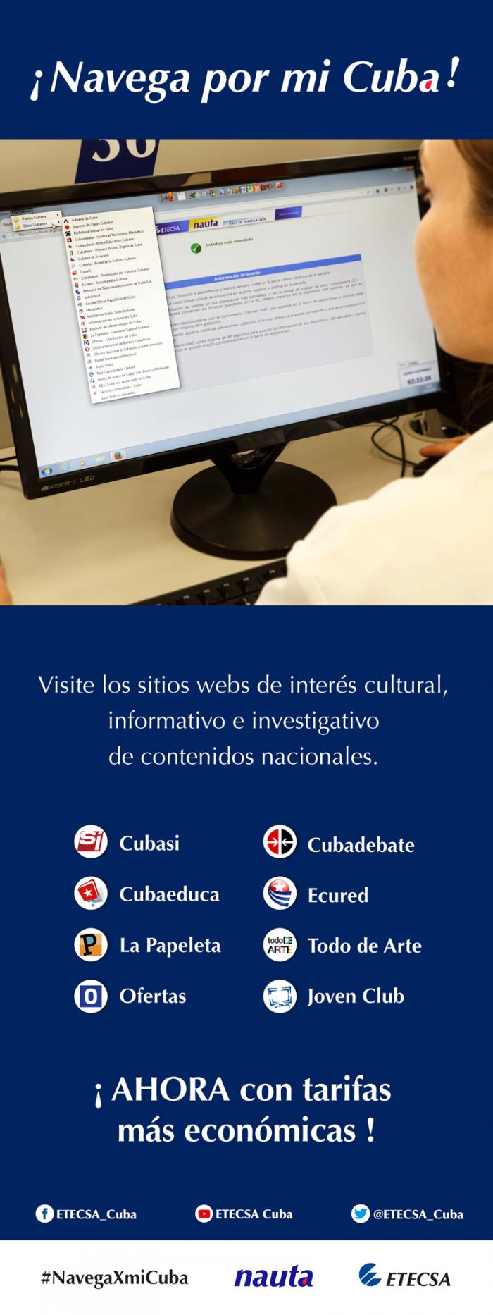 La Empresa de Telecomunicaciones de Cuba, S.A. ha rebajado, a partir de hoy 30 de marzo, la tarifa para la navegación nacional a 0.10 cuc/hora
